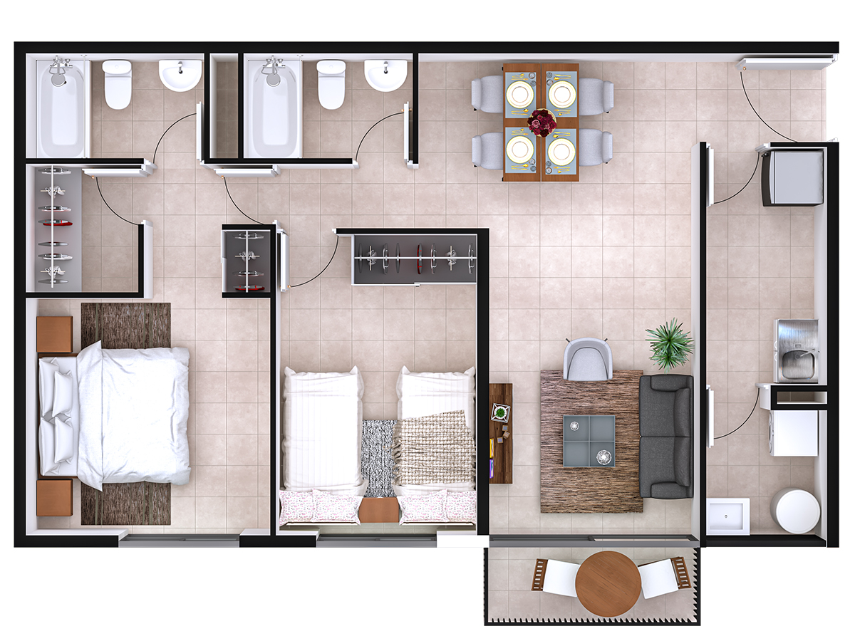 2 Dormitorios + 2 Baños
