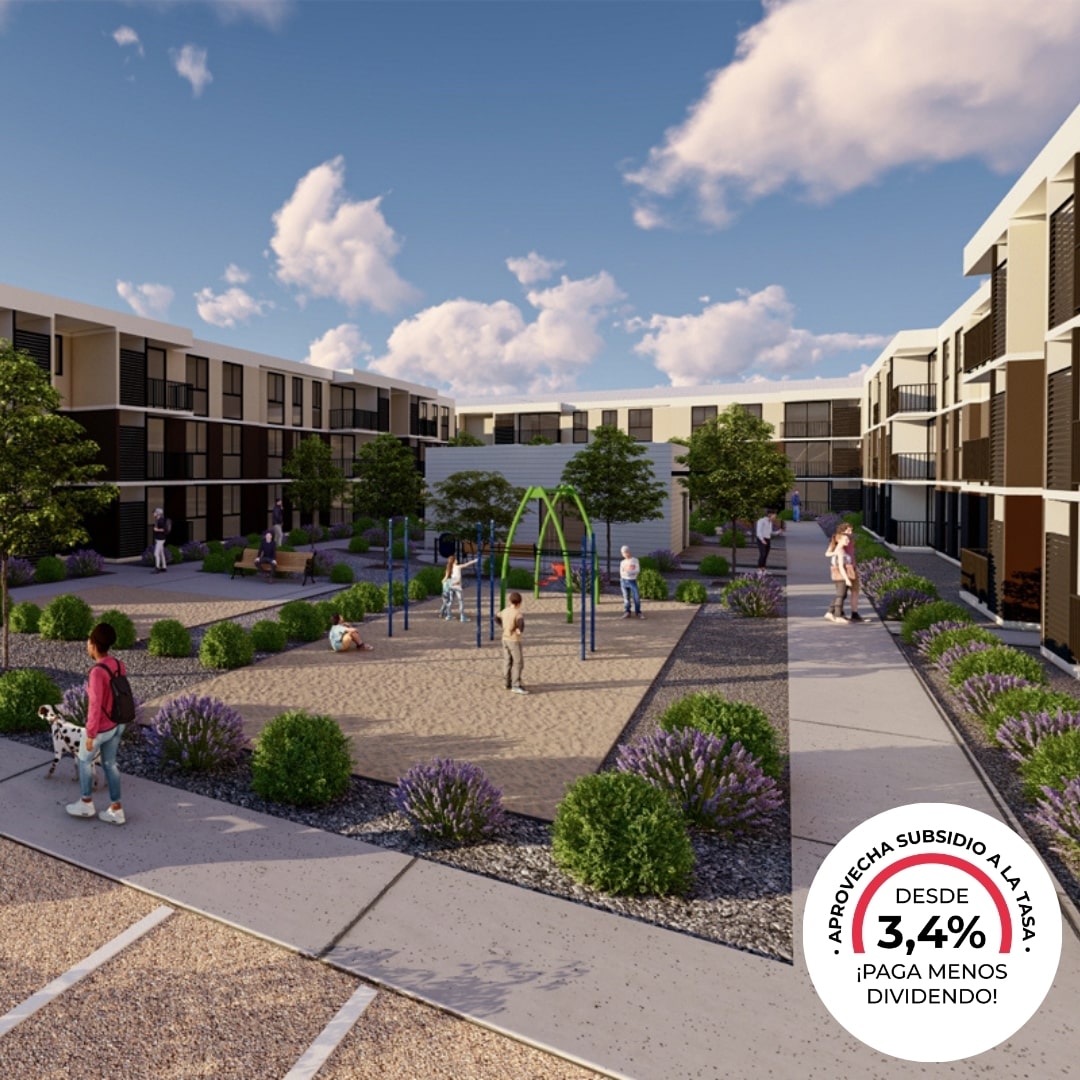 Sup. Útil 47 m2 SUP. TOTAL: 51 M2 Fecha estimada de entrega, primer semestre 2026. (*) Los plazos de entrega pueden sufrir variaciones por fuerza mayor. Modelo B Dormitorios alfombrados/Living, comedor y baño con piso cerámico/ Cocina con logia/ Terraza. (*) Las ambientaciones y decoración en plantas dentro de este sitio web son ilustrativas y referenciales, por lo que no constituyen necesariamente una representación de la realidad. Sup. Útil 52 m2 SUP. TOTAL: 57 M2 Fecha estimada de entrega, primer semestre 2026. (*) Los plazos de entrega pueden sufrir variaciones por fuerza mayor. Modelo C Dormitorio principal con baño en suite y walking closet/Piso alfombrado en dormitorios/ Living, comedor y baños con piso cerámico/Cocina con logia/ Terraza. (*) Las ambientaciones y decoración en plantas dentro de este sitio web son ilustrativas y referenciales, por lo que no constituyen necesariamente una representación de la realidad. Sup. Útil 55,8 m2 SUP. TOTAL: 62 M2 Fecha estimada de entrega, primer semestre 2026. Los plazos de entrega pueden sufrir variaciones por fuerza mayor. Modelo D Dormitorio principal con baño en suite y walking closet/ Piso alfombrado en dormitorios/ Living, comedor y baños con piso cerámico/ Cocina con logia/ Terraza. (*) Las ambientaciones y decoración en plantas dentro de este sitio web son ilustrativas y referenciales, por lo que no constituyen necesariamente una representación de la realidad.Equipamiento